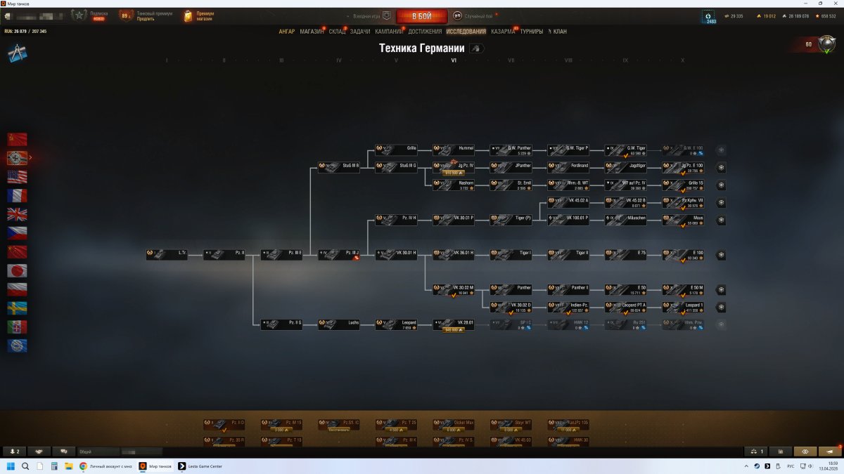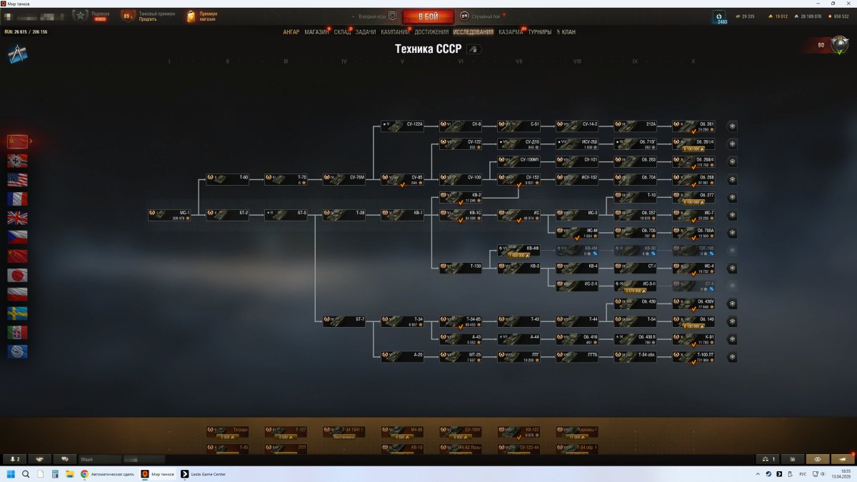 На аккаунте исследована вся техника. В Ангаре 76 десяток. 41 Девятка. 55 восьмерок. Всего 220+