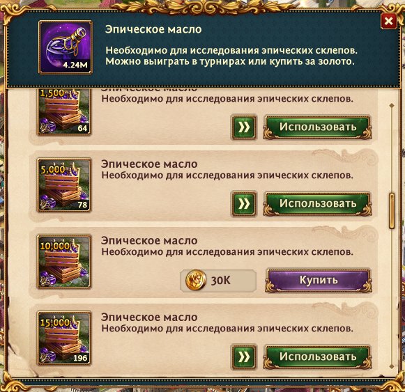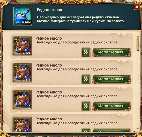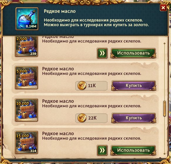 Куча масла, камней, чар, зелья.