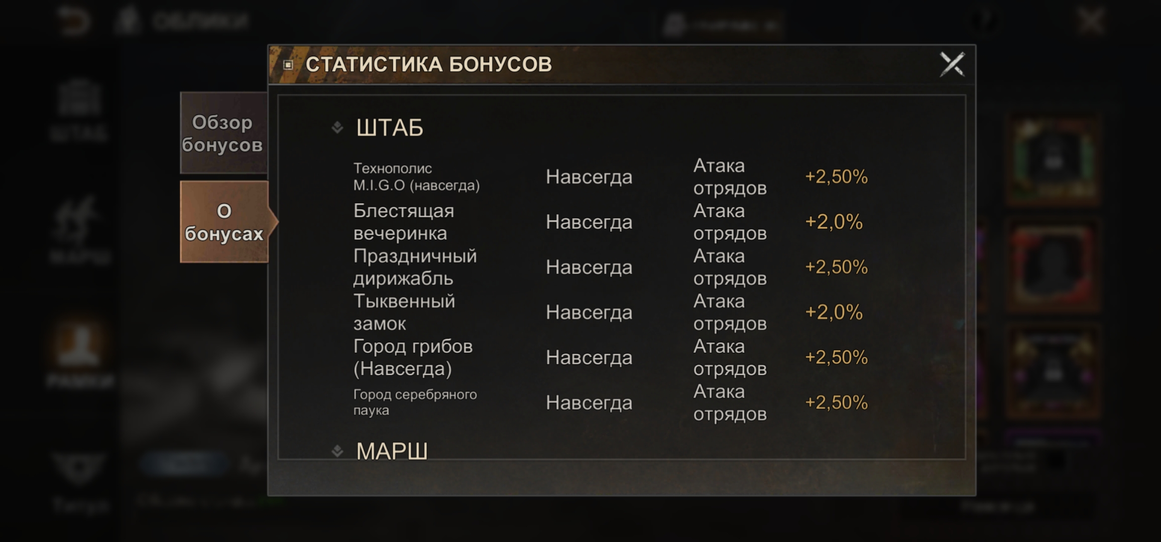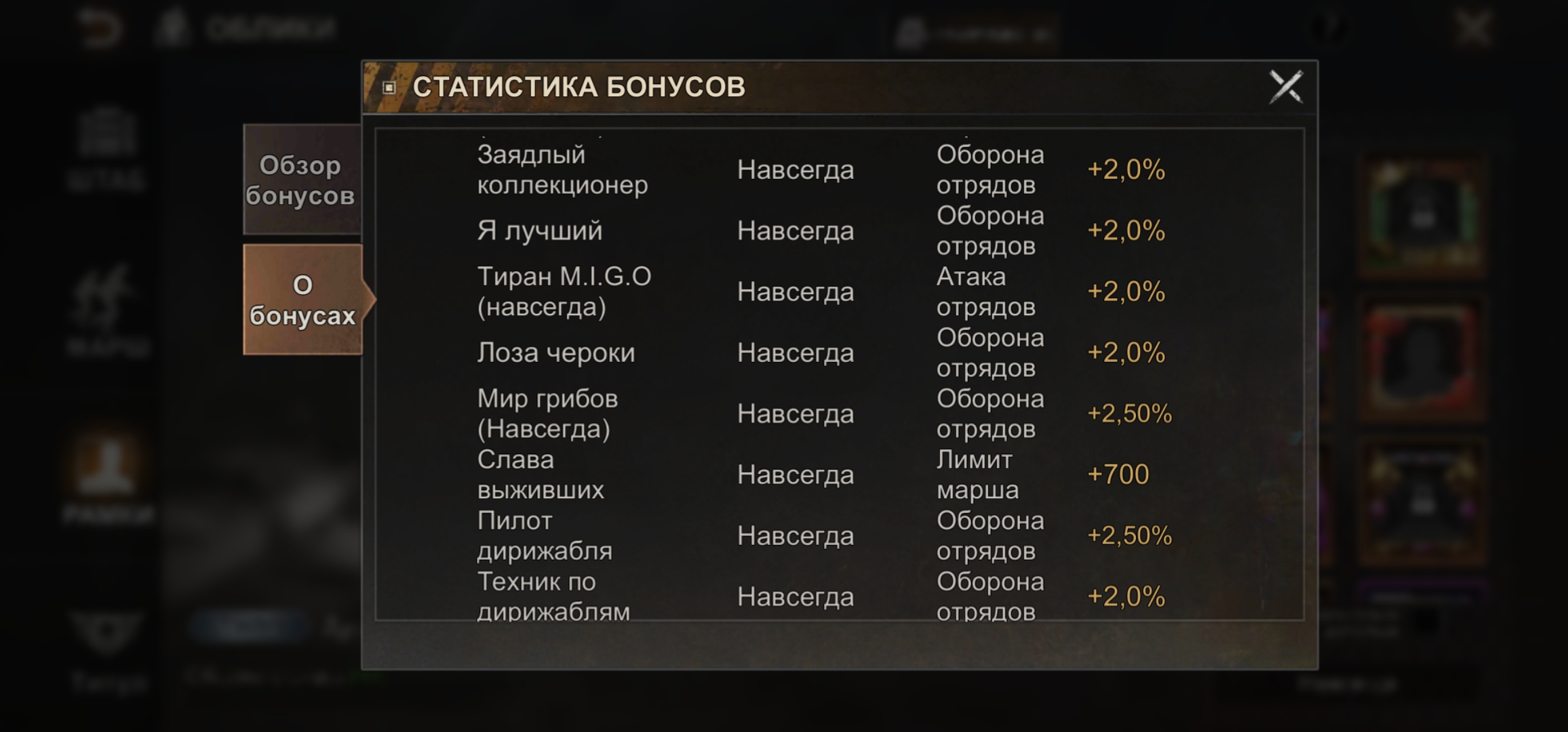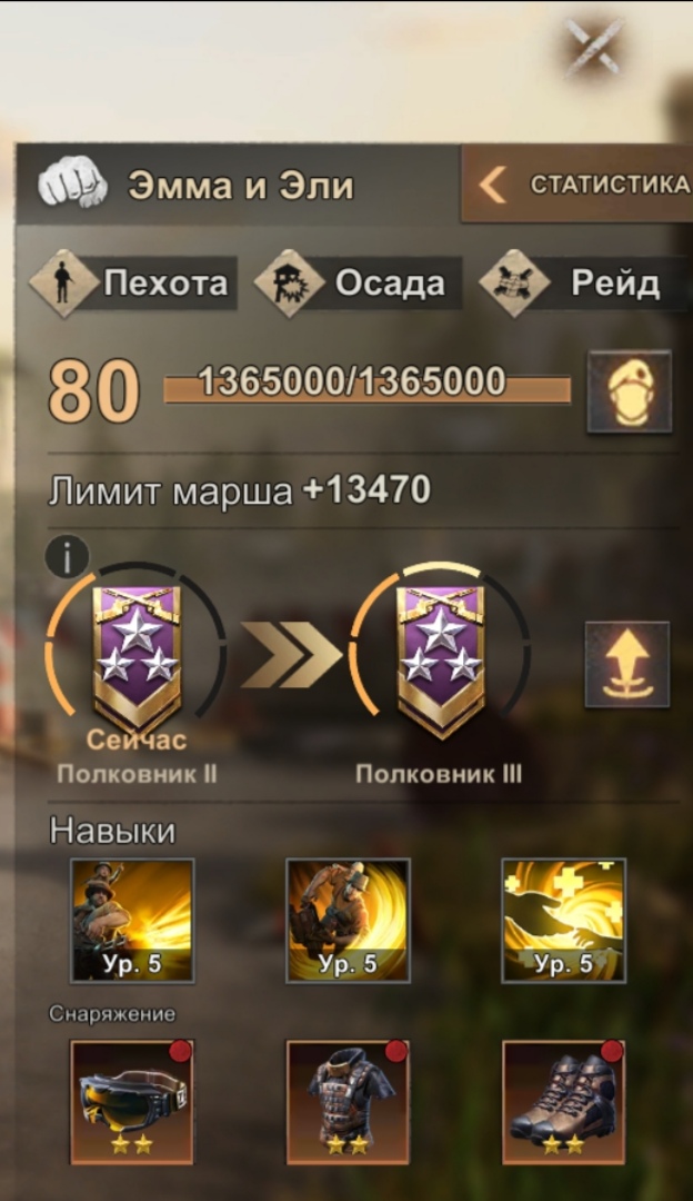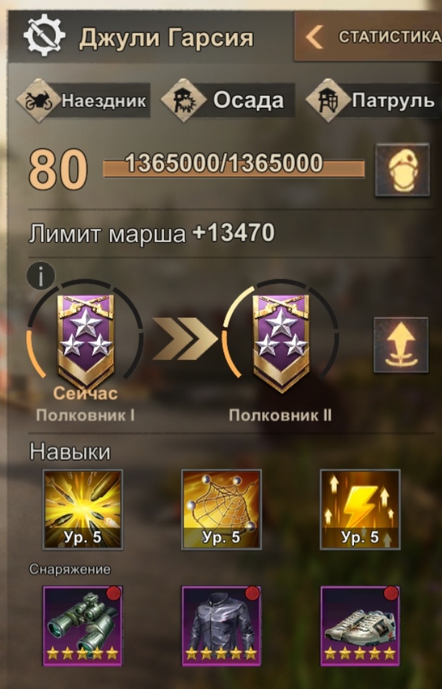 ение героя от фиолетового 5 звёзд, будет все от оранжевого. Уровень медалей шефа все от серебро 2ур. Сейчас сильнейшие Йит2 идёт. Рюкзак очень хороший. Всё облики мировых событий + несколько других. Есть купоны обликов на один штаб, пока не брал, жду красивый. Много обликов маршей и рамок. Лаборатория на вкладке развитие почти фулл, на вкладке война последний этап, атака 11/12 до неё всё фулл.