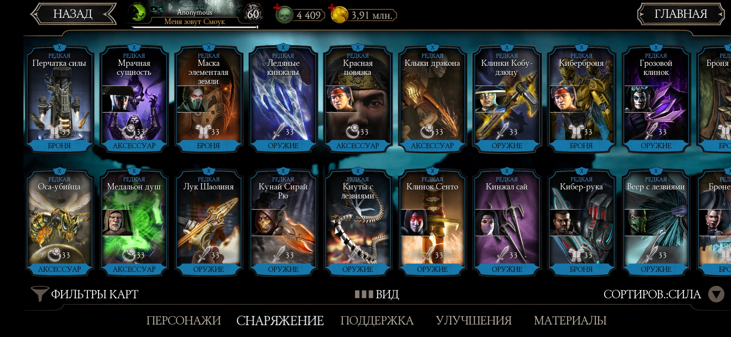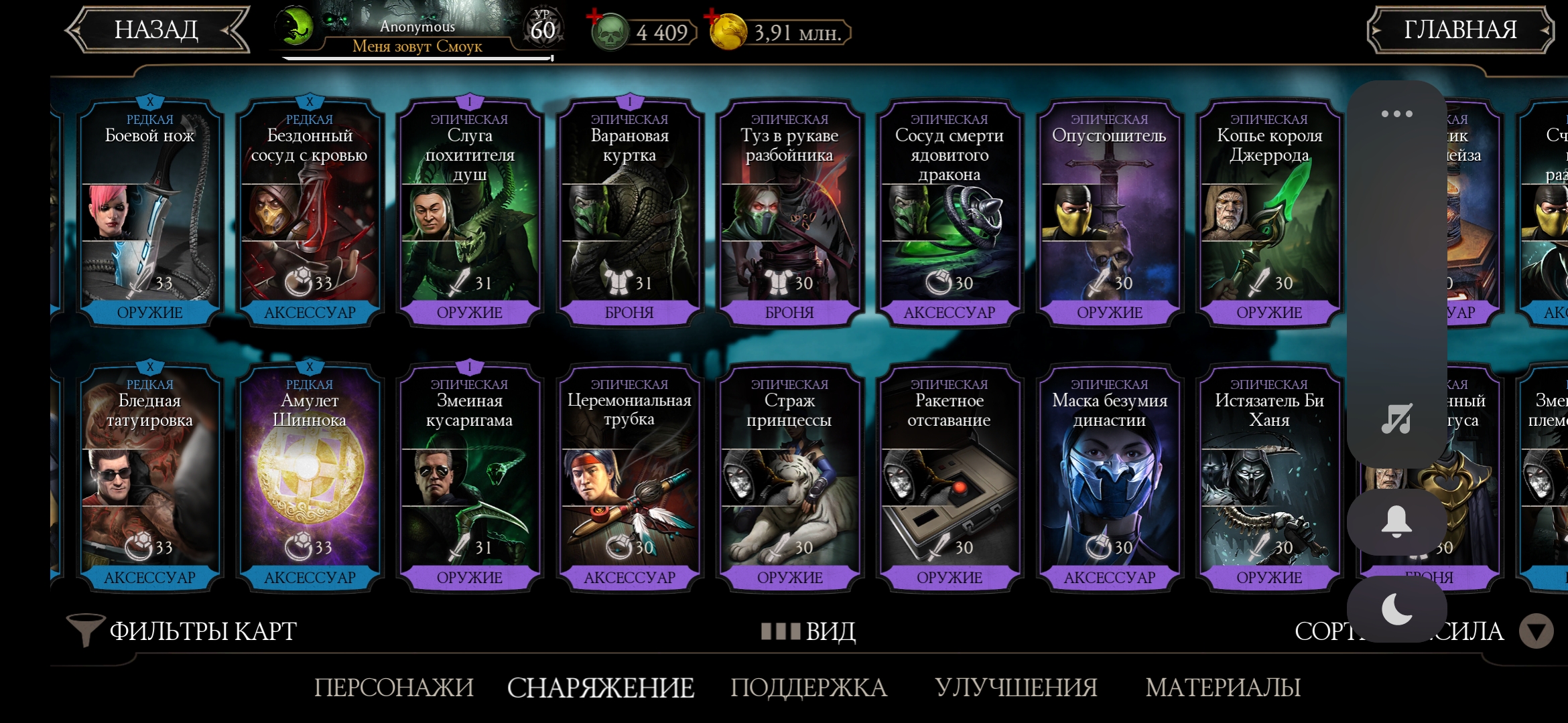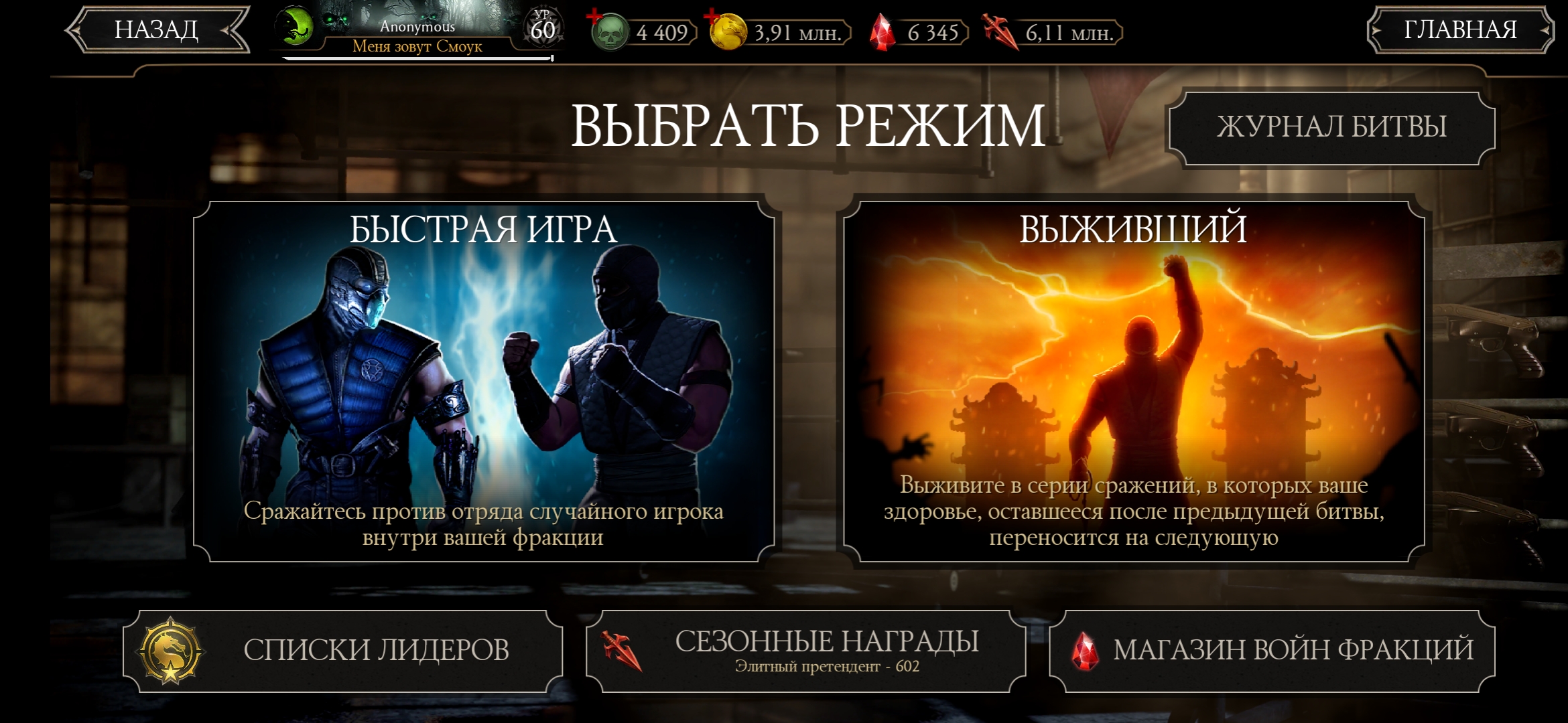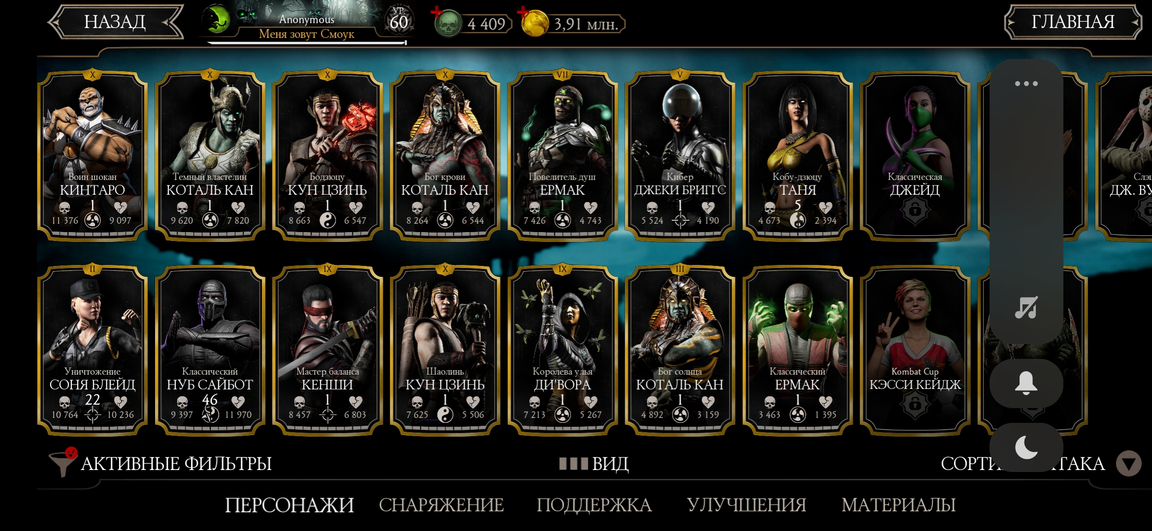 Оценка аккаунта mortal Kombat mobile