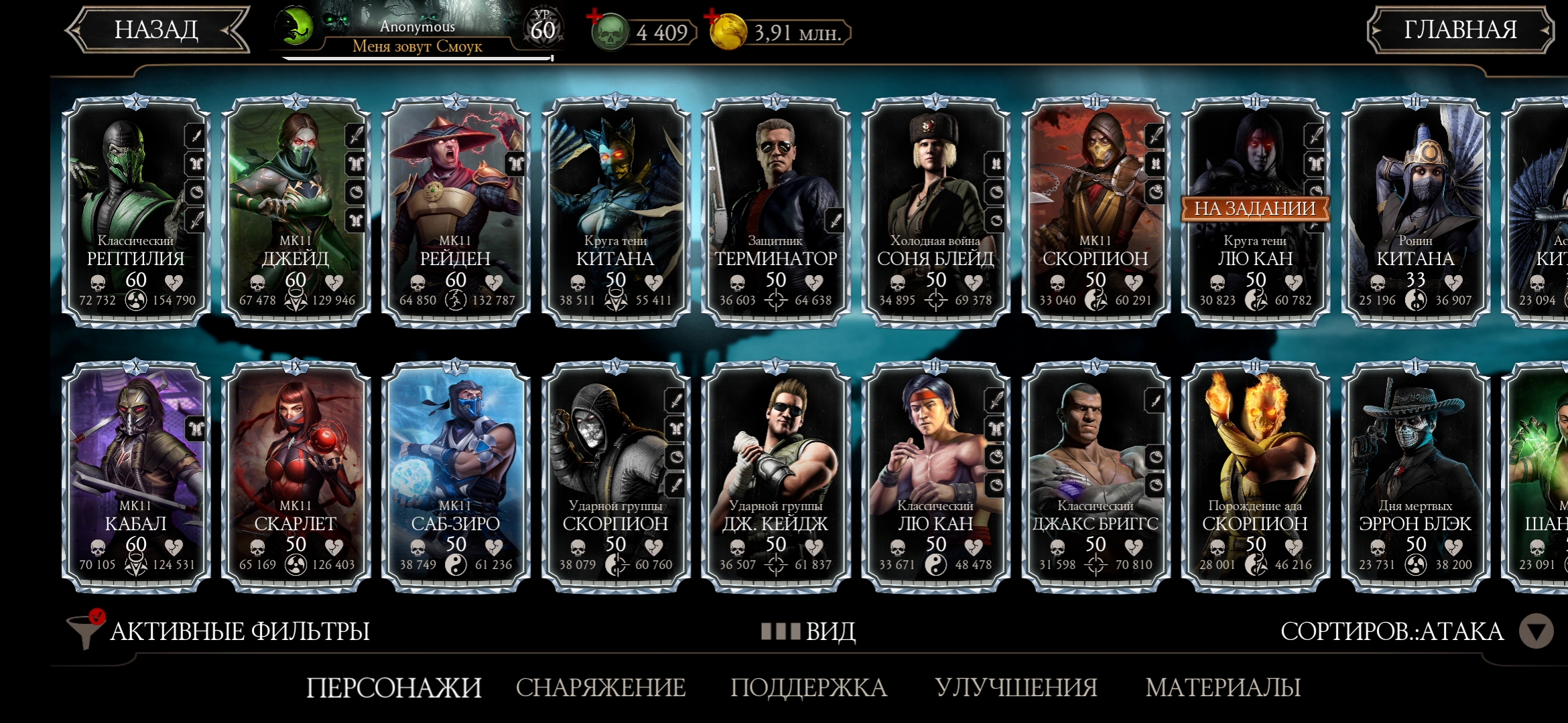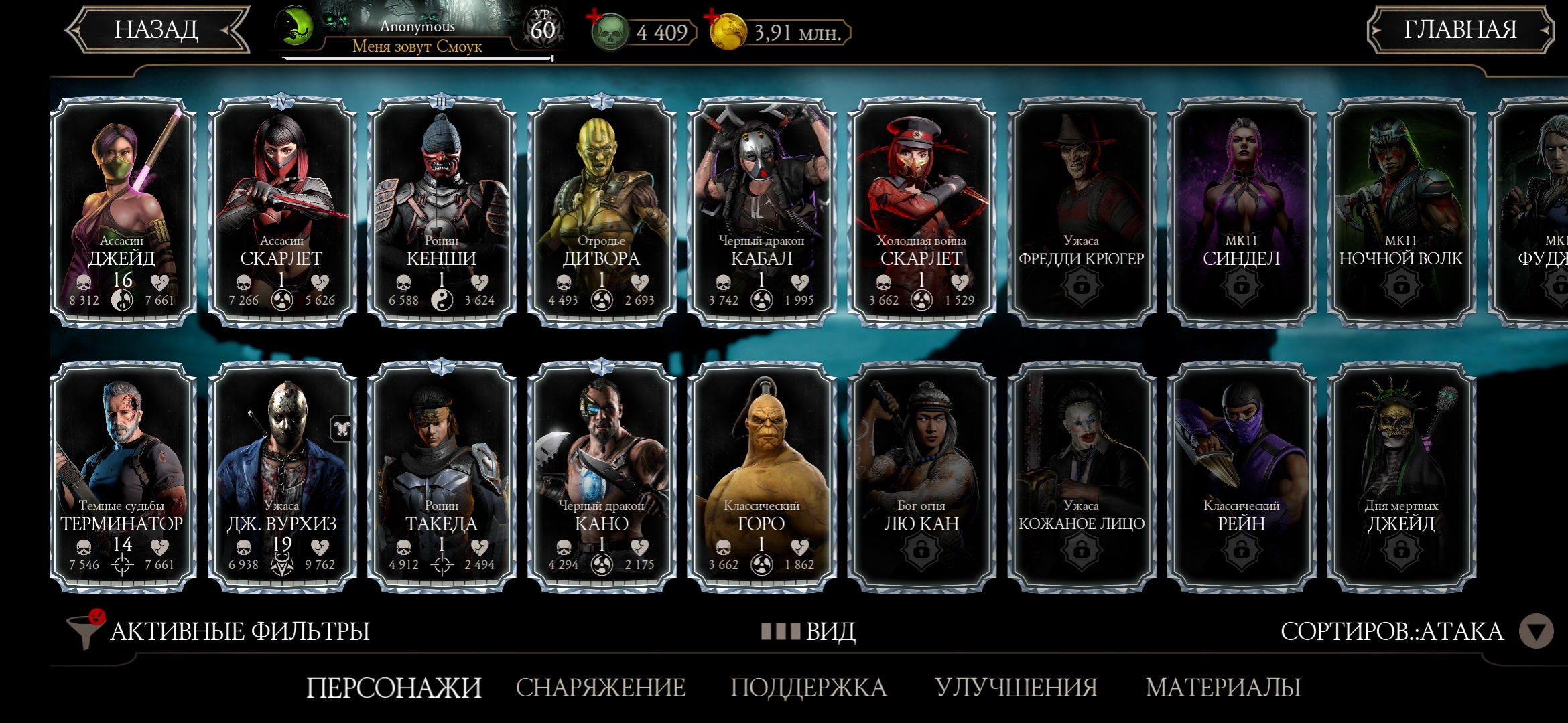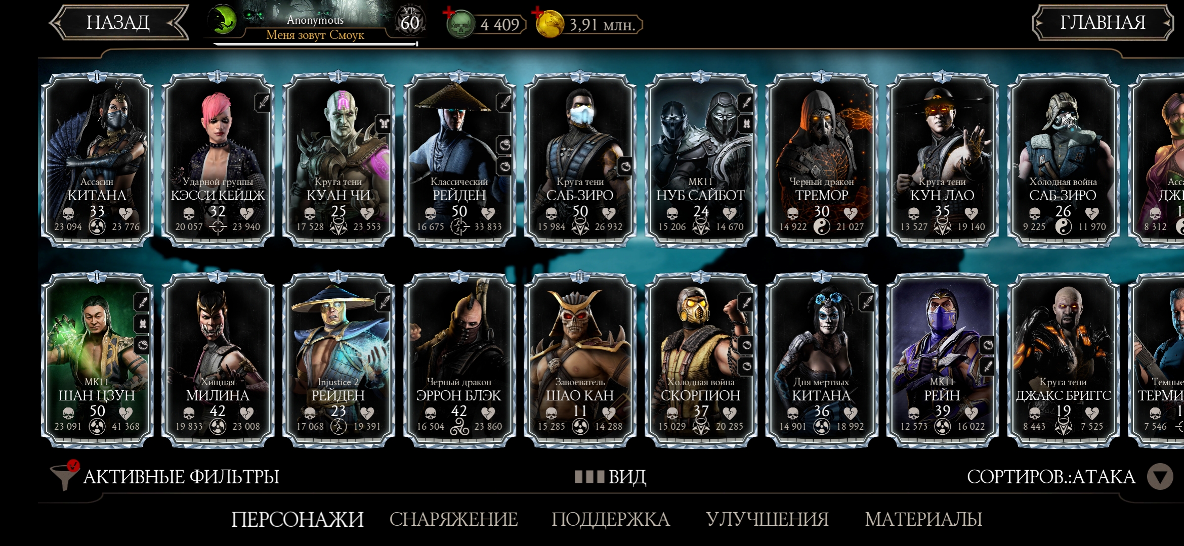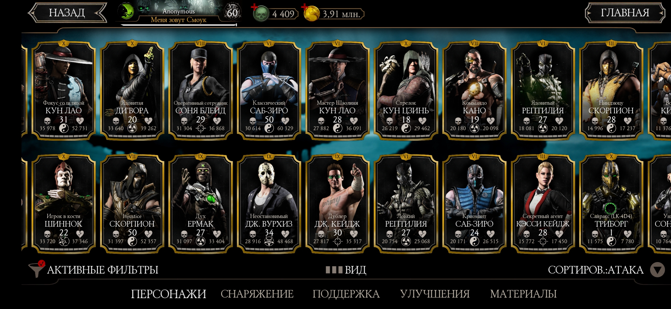 Оценка аккаунта mortal Kombat mobile