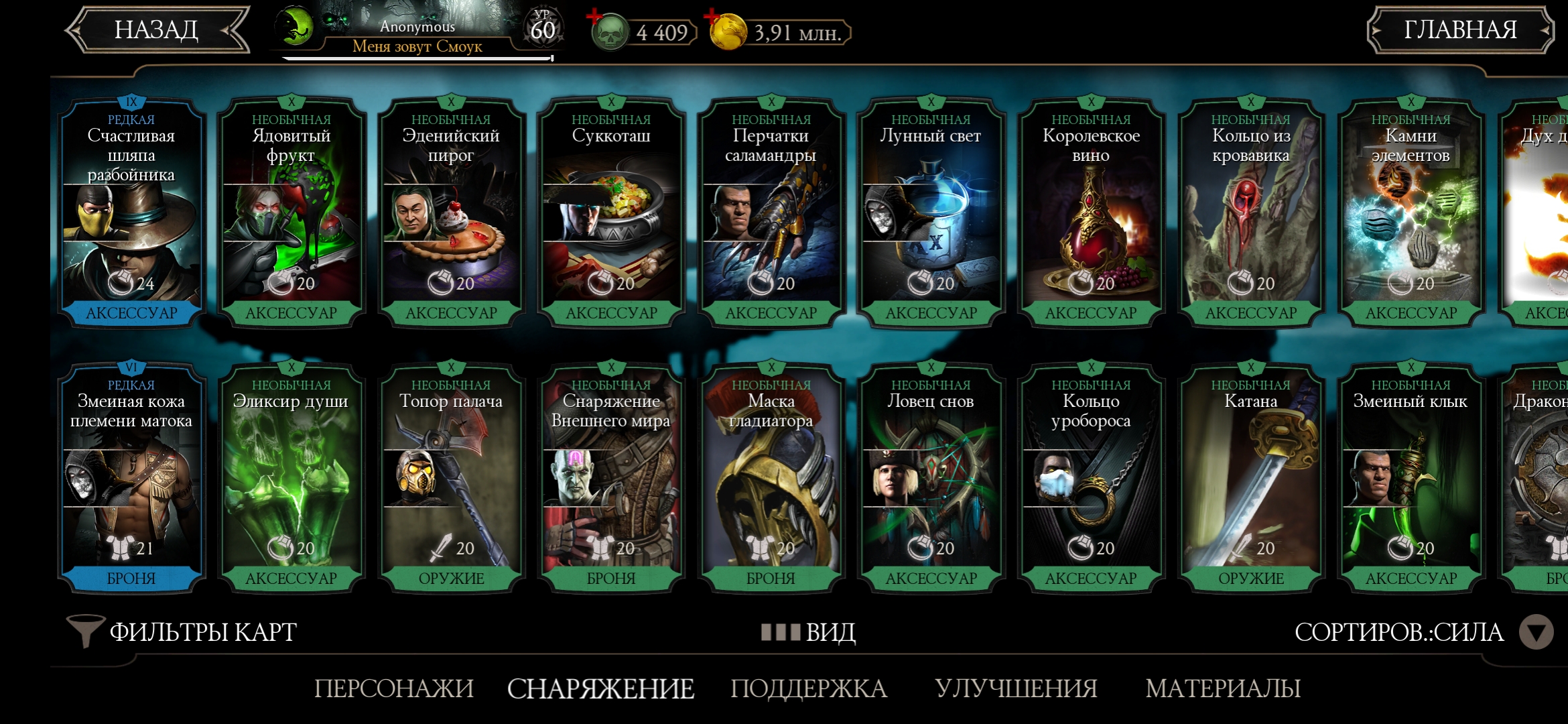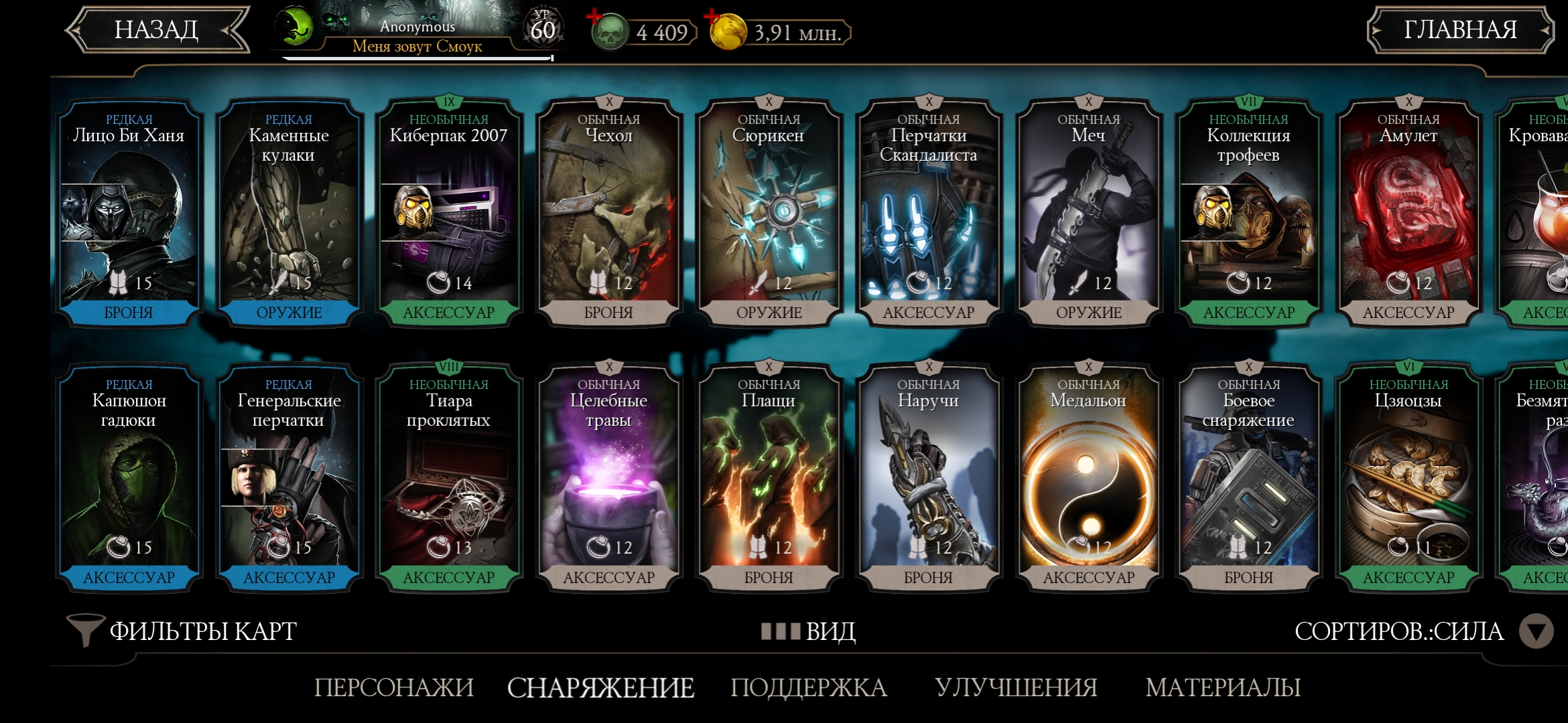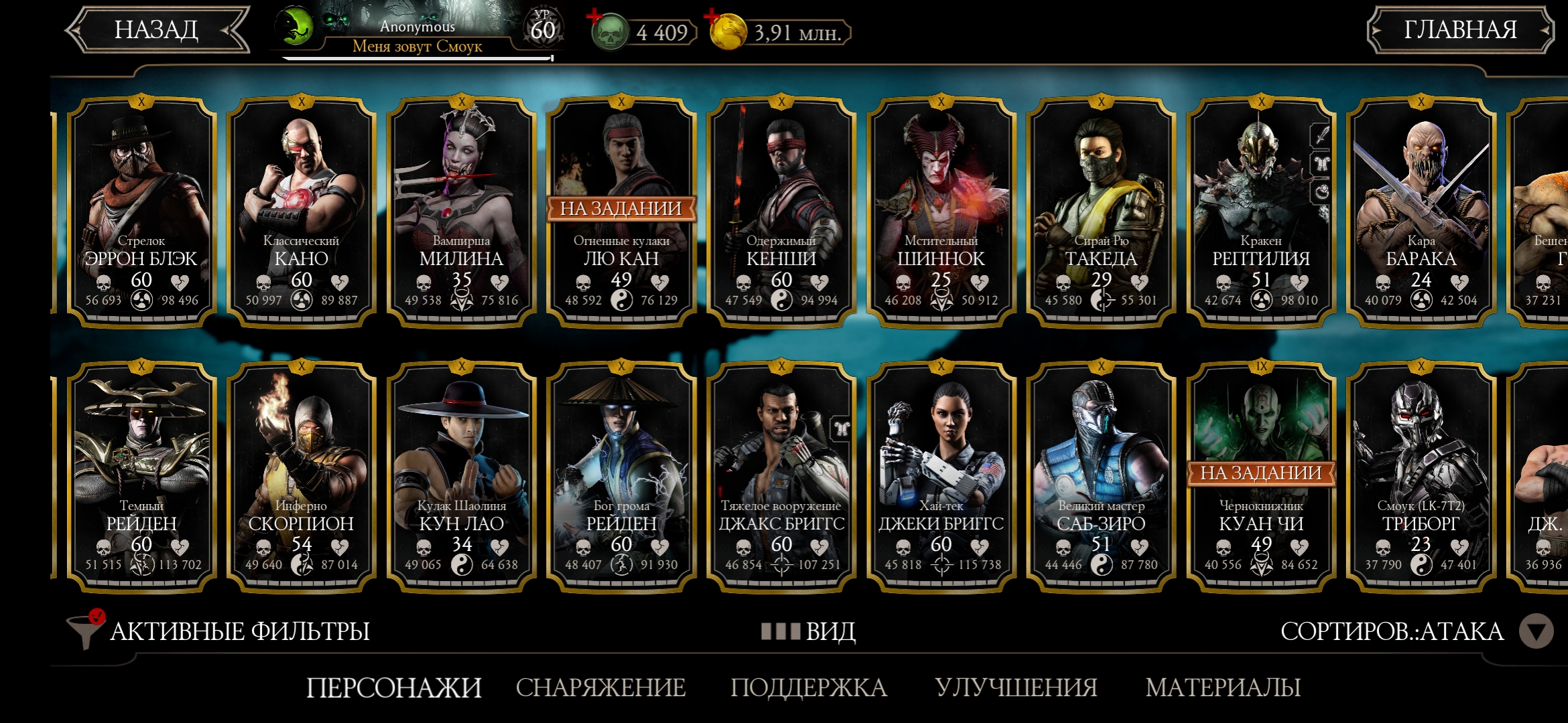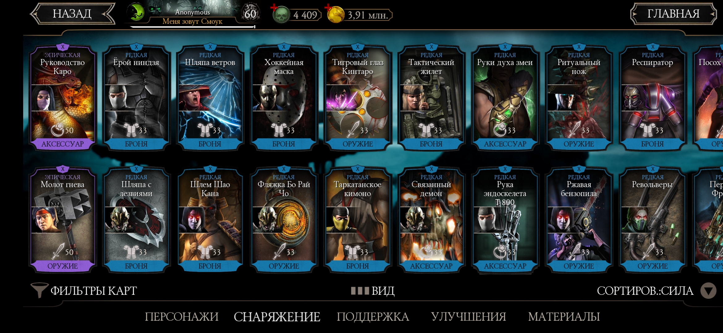 Оценка аккаунта mortal Kombat mobile