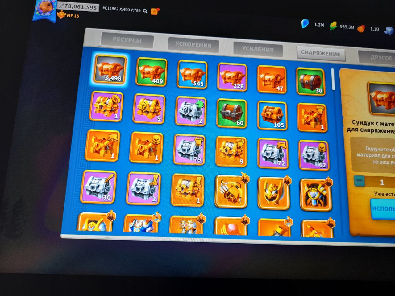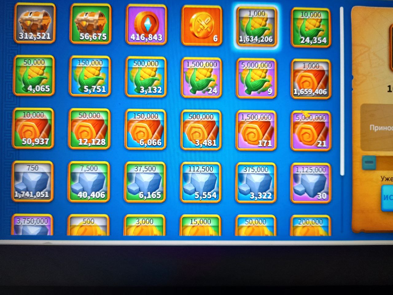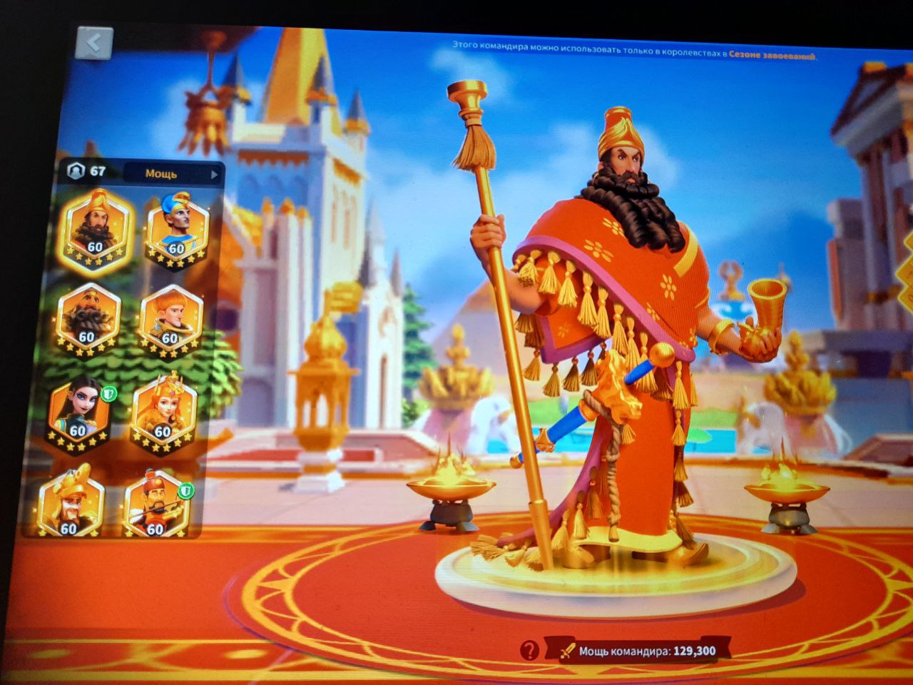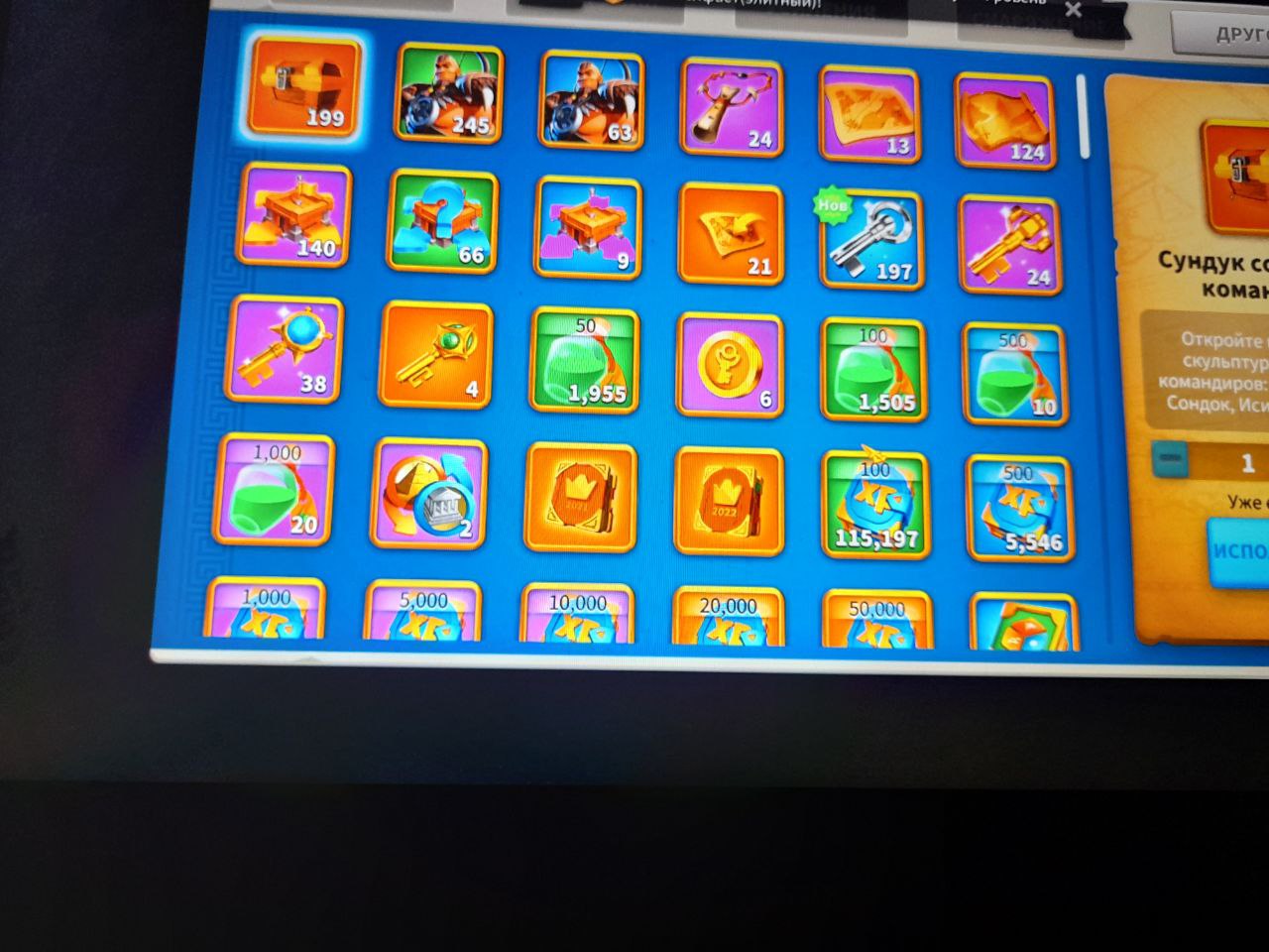 Аккаунт 78 млн мощи, 15 вип, 530 золотых голов 50000 гемов, аккаунт лучников, фулл (навуходоносор, рамзес, гильгамеш. генри, артемисия, эдвард, лисонге, этельфлед, сондок, исида, клеопатра, все фиолетовые фулл. 1100 дней в игре. есть 21 паспорт, а также почти 30млн серебра. Очень много ресурсов, а так же книжек для опыта, если будет заинтересованность посчитаю. Количество войнов, т5 (пехота 650к, луки 994, кони 510) т4 (пехота 224, луки 100, кони 240) цифры могут меняться, идет квк, фулл технологии, фулл строительство. 1млрд убийств, может меняться из-за квк. Небольшая сводка по другим легендарным героям (цезарь, 5545 цао 5535 сид 5535 карл 5533 томирис 5143 аманитора 51 жанна 31 фридрих 5551 мехмед 5513 мулан 5531 боудика 51 александр 51 рагнар 53 чингисхан 51) также имеется 37 сбросов талантов.