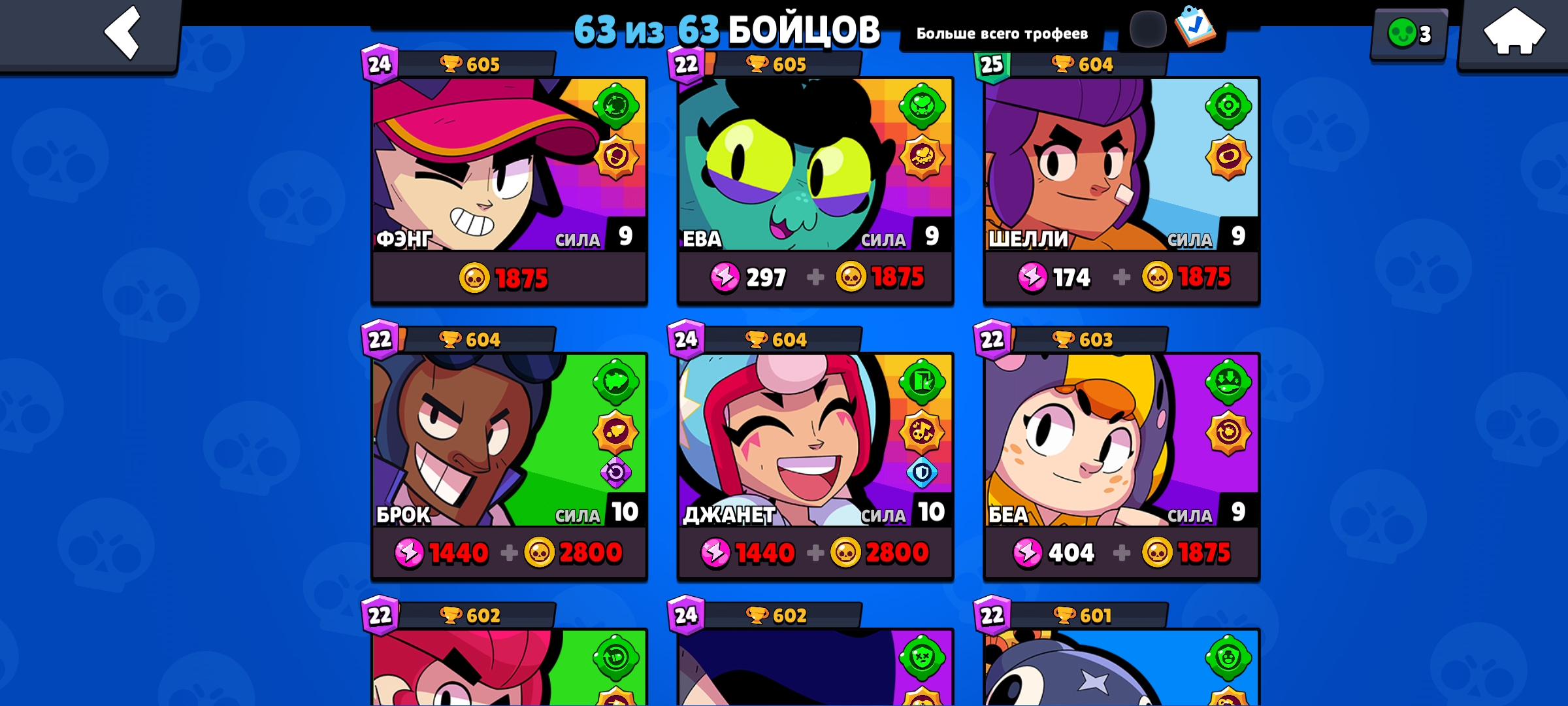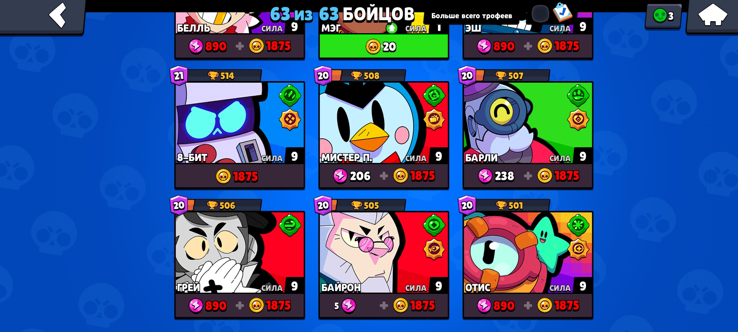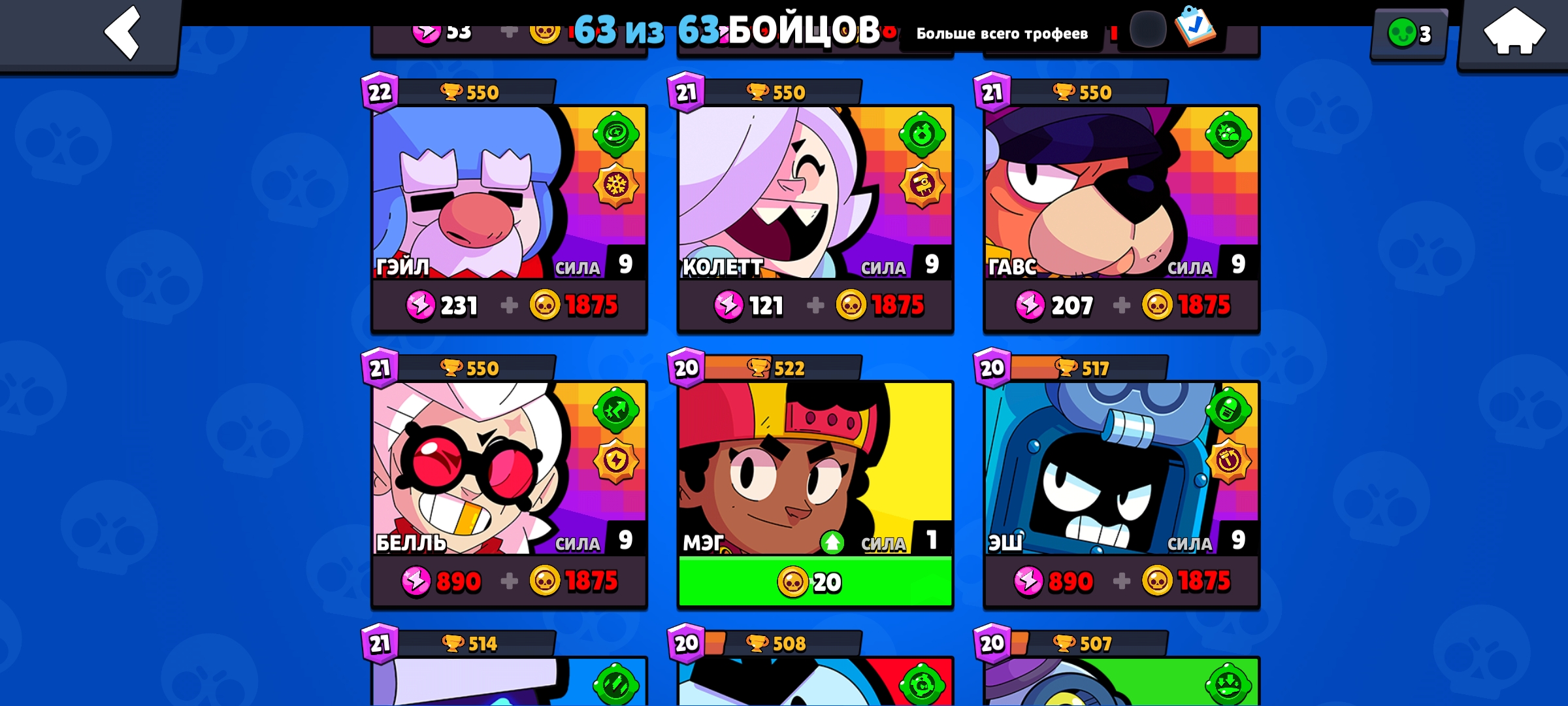 Все(кроме мег) на 9-11 силе, все гаджеты и почти все старки