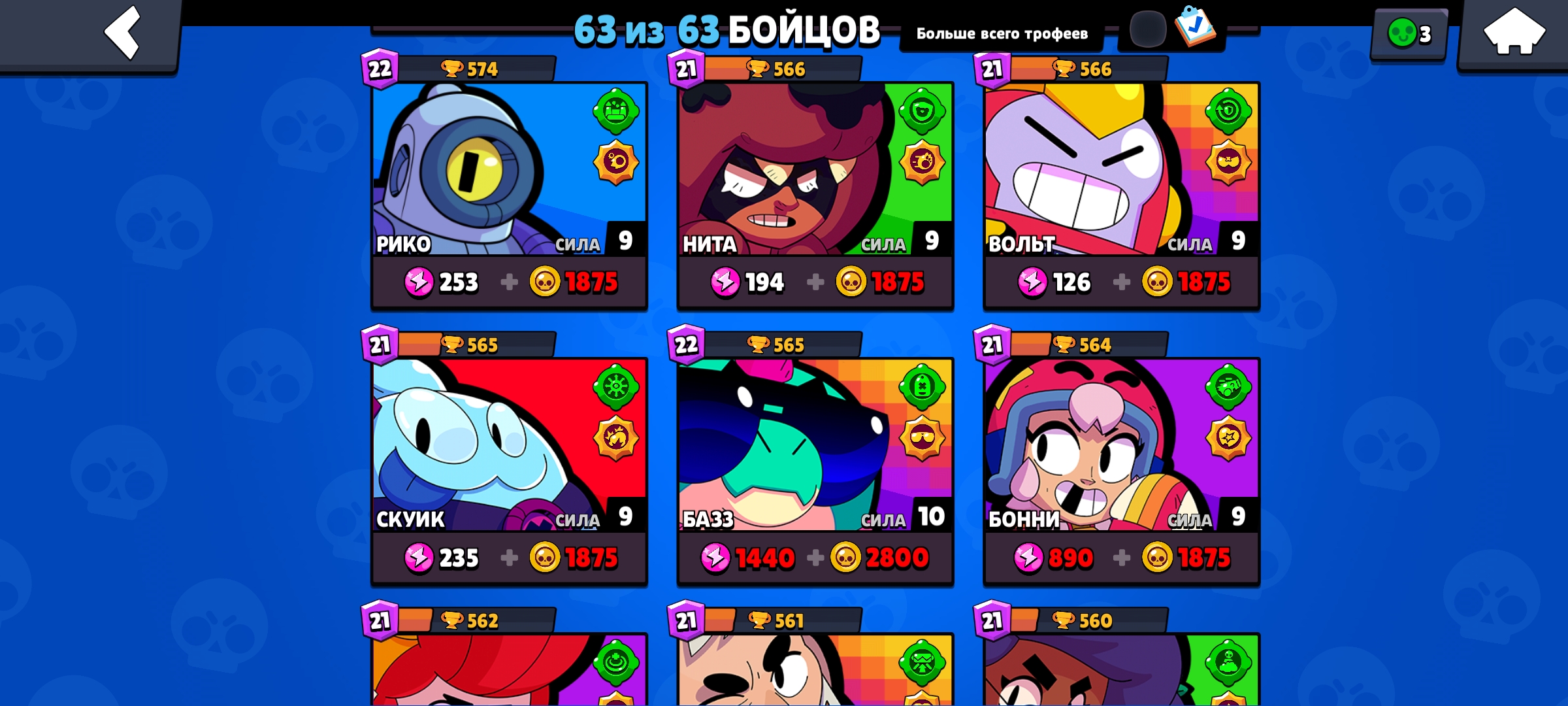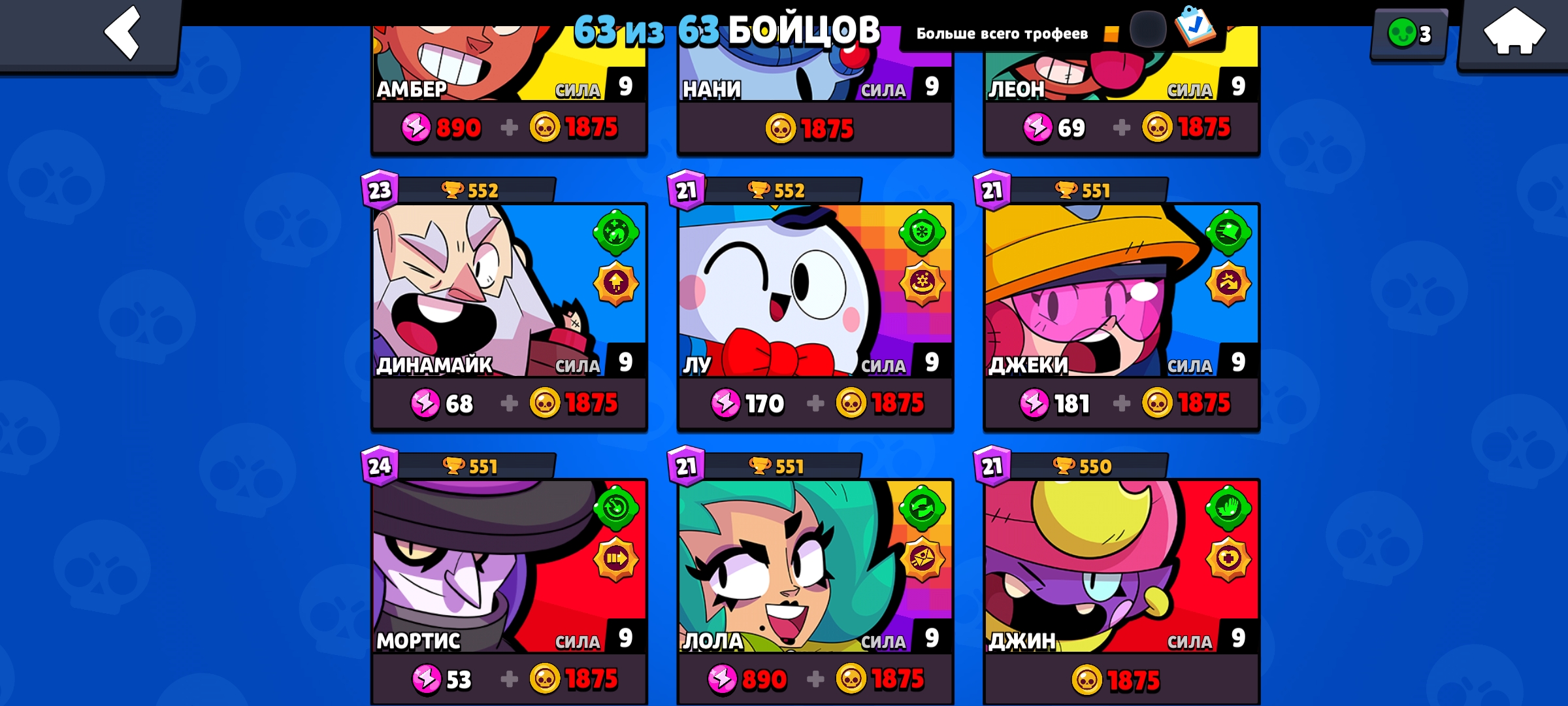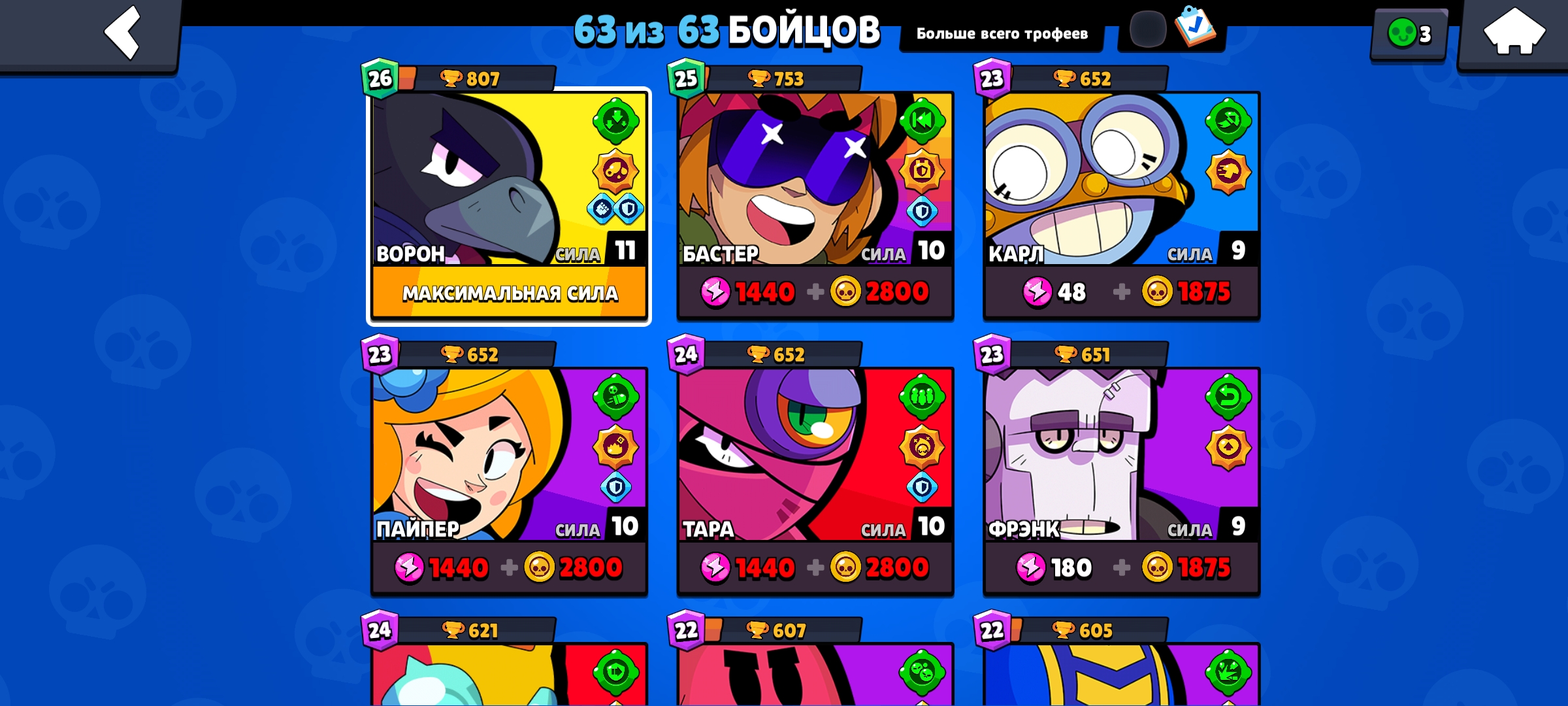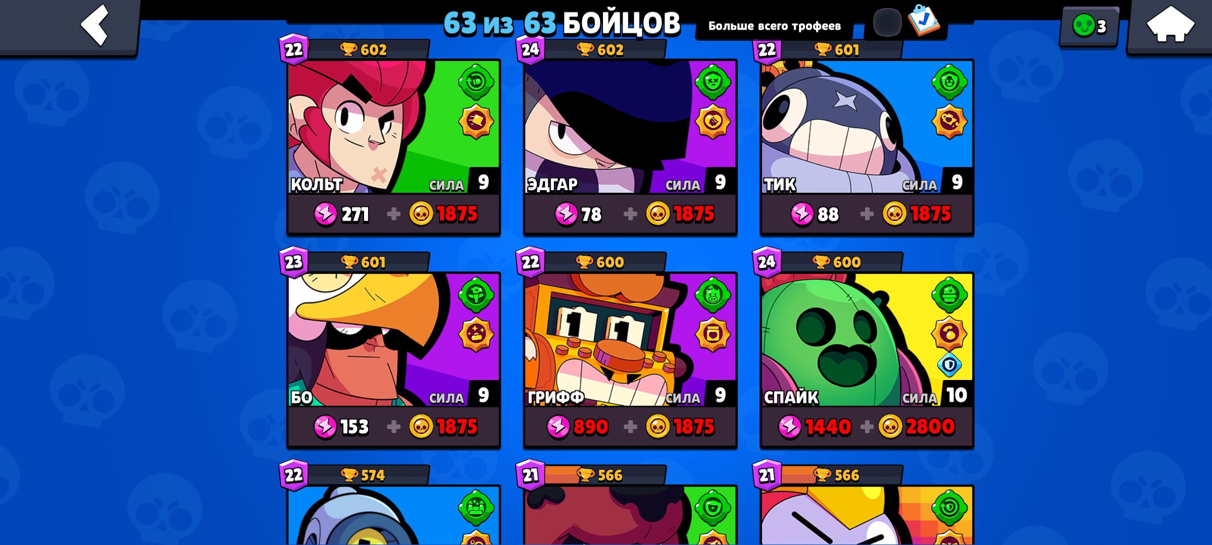 Все(кроме мег) на 9-11 силе, все гаджеты и почти все старки