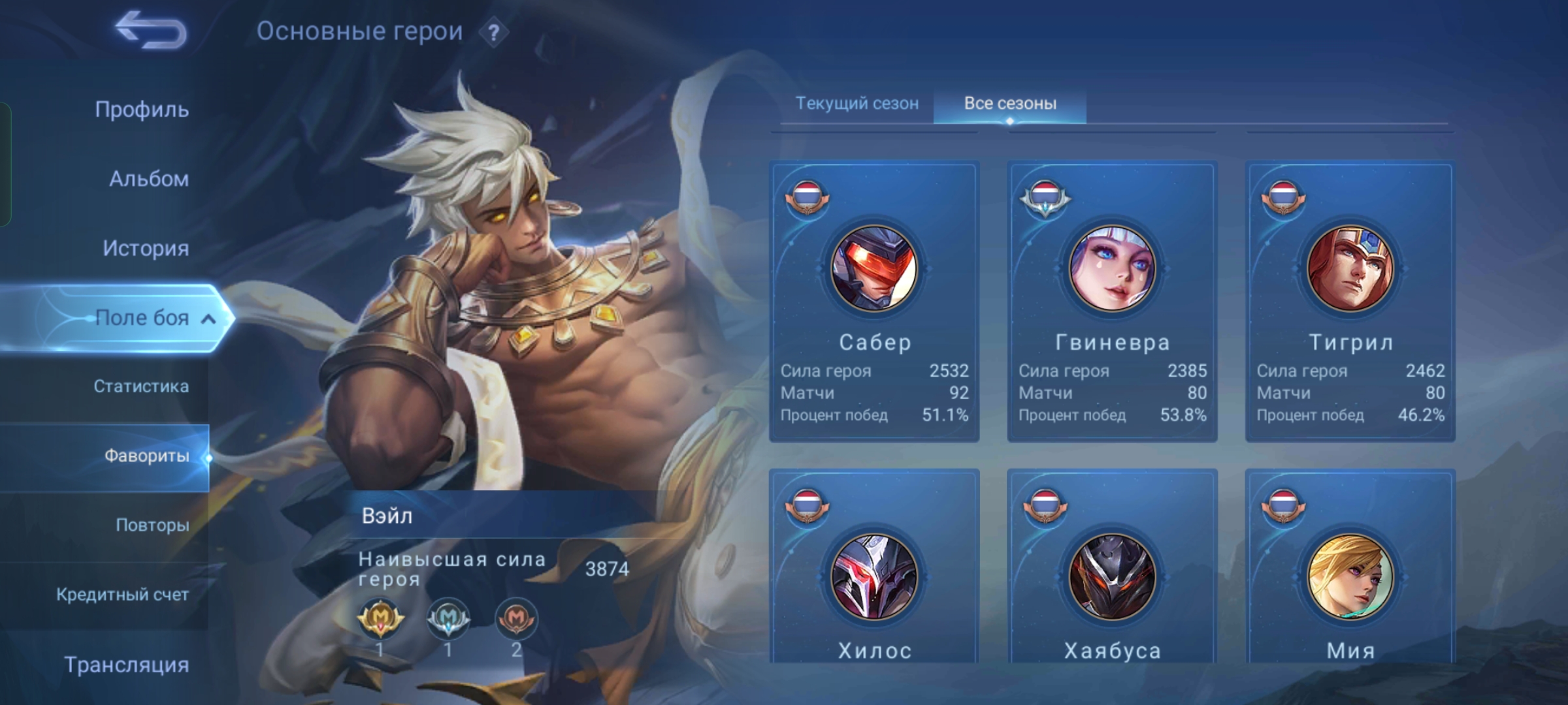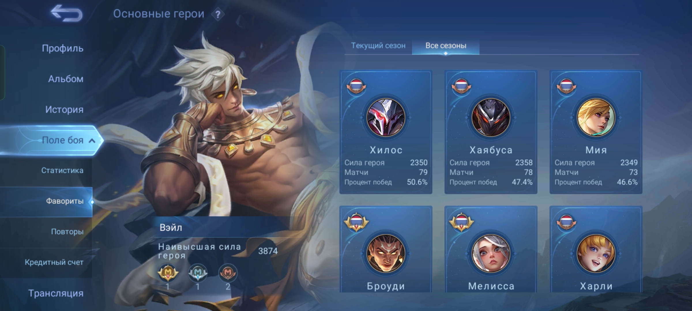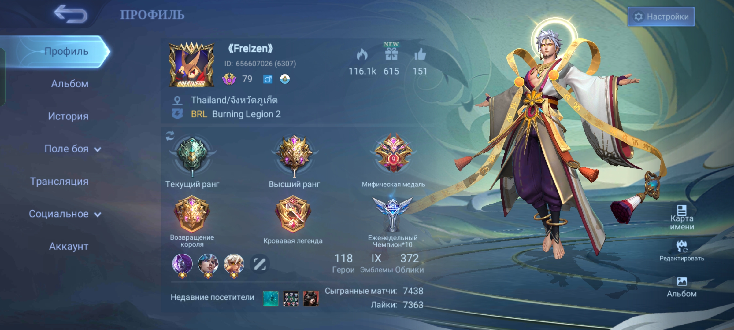 Оцените аккаунт пожалуйста. 79 небесный лвл, 118 героев(на данный момент это все существующие герои), 372 облика,полностью все эмблемы на фулл, Макс ранг миф 1,прикладываю скрины аккаунта