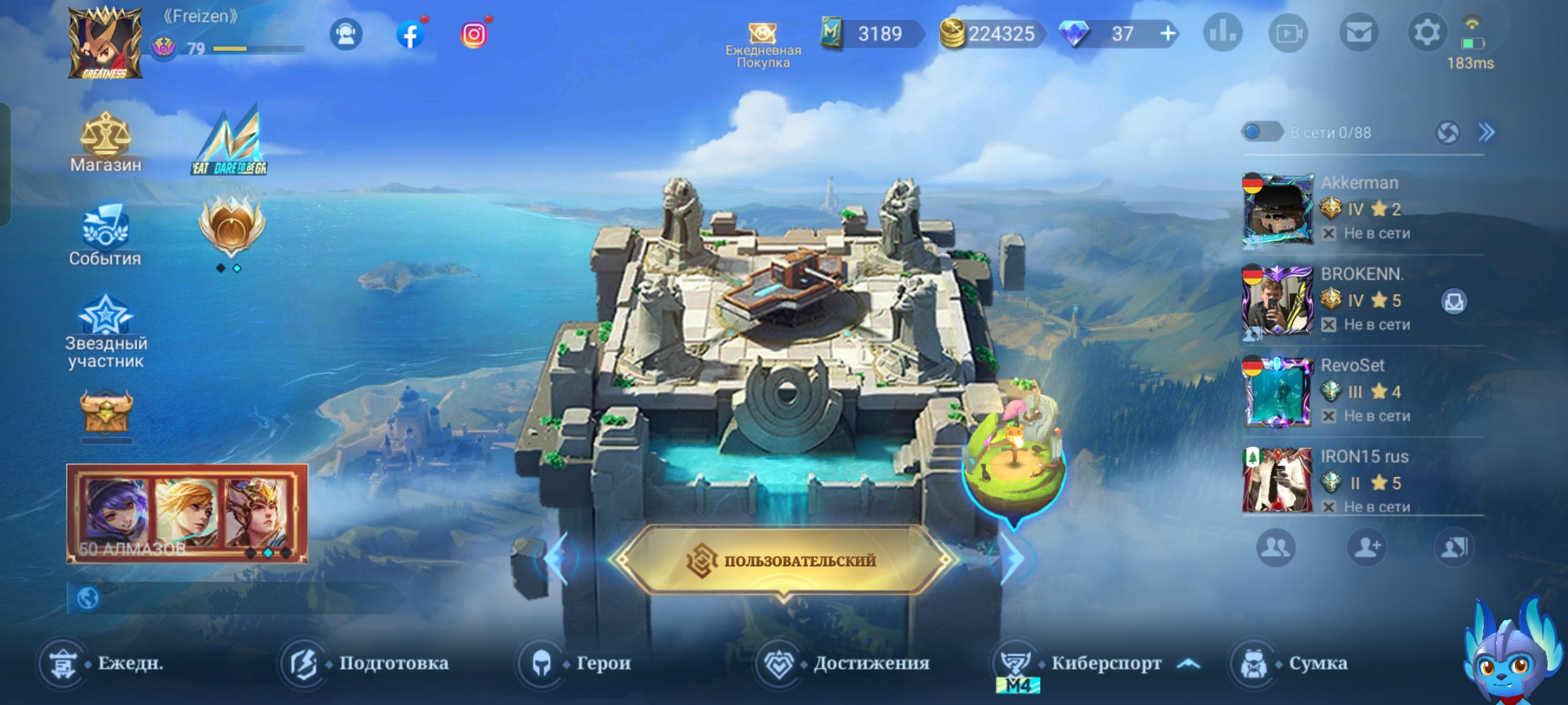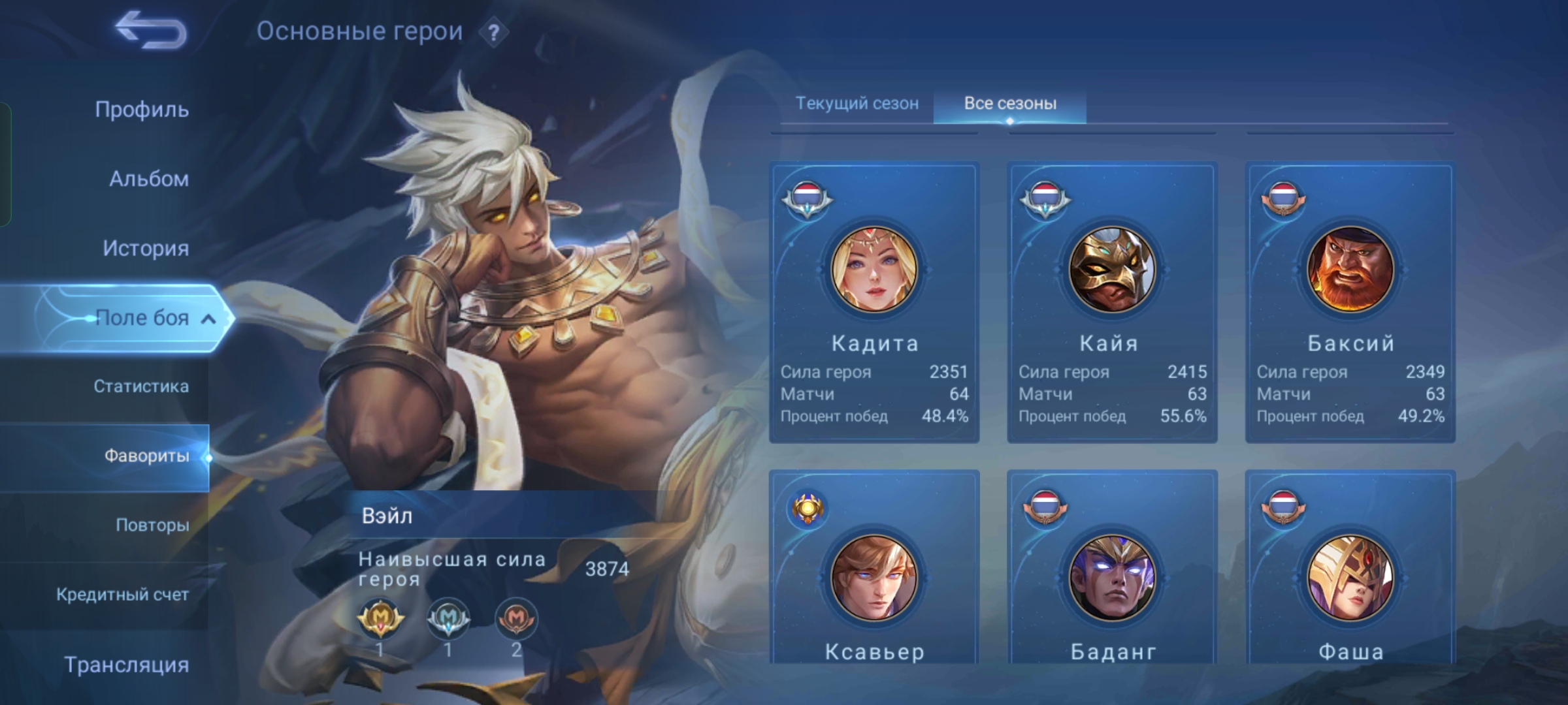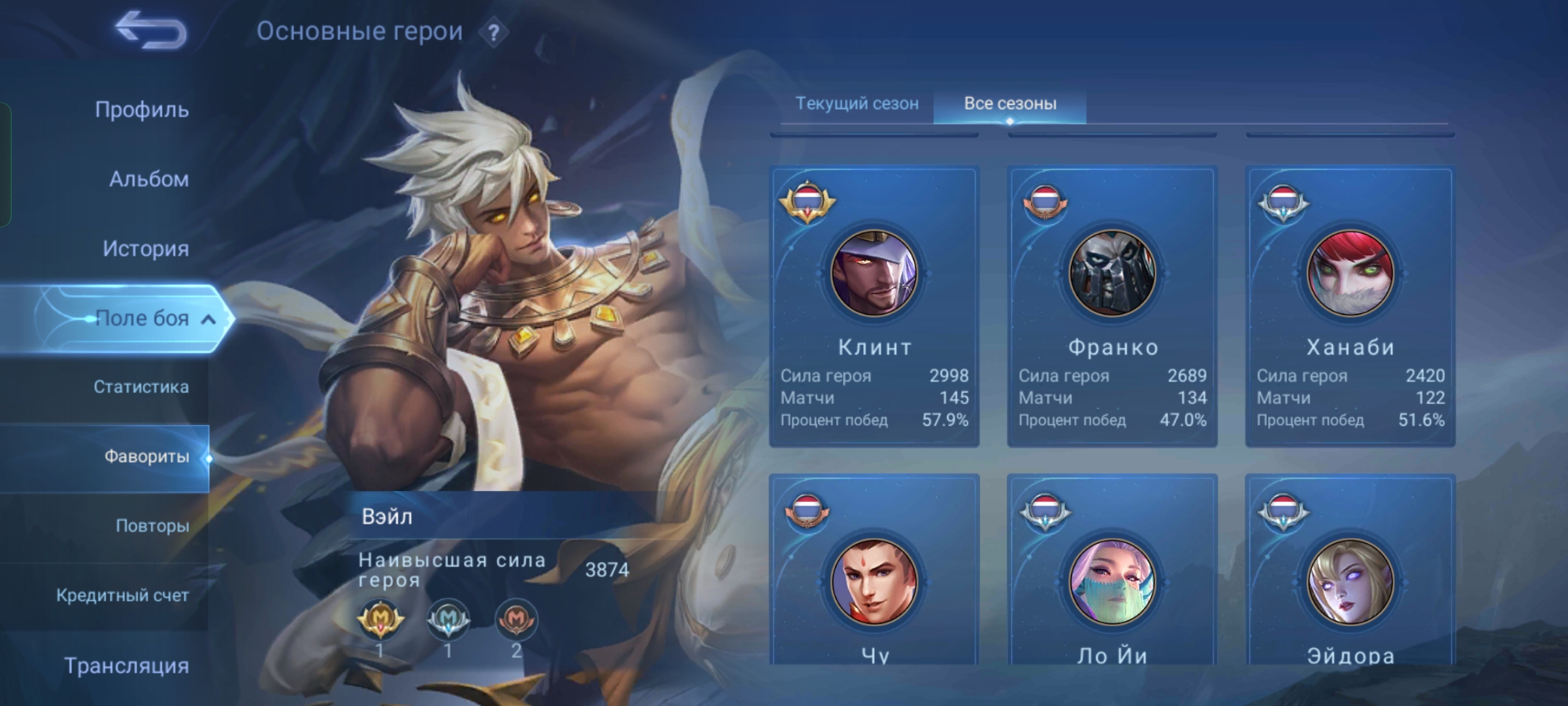 Оцените аккаунт пожалуйста. 79 небесный лвл, 118 героев(на данный момент это все существующие герои), 372 облика,полностью все эмблемы на фулл, Макс ранг миф 1,прикладываю скрины аккаунта