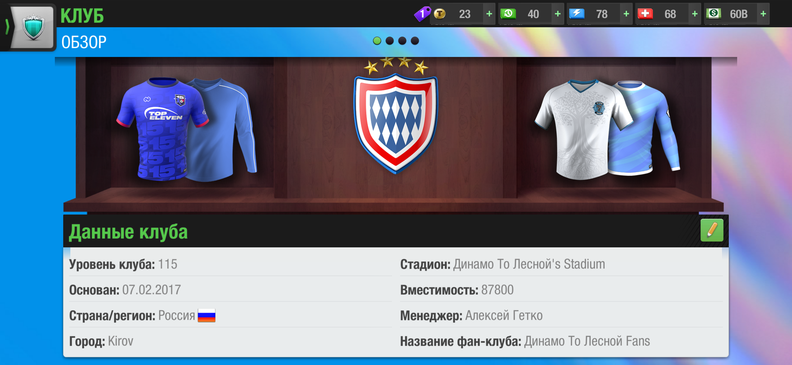 Продам аккаунт Top Eleven