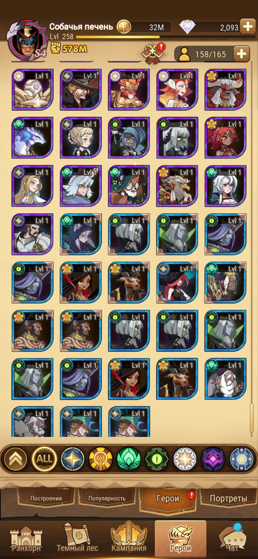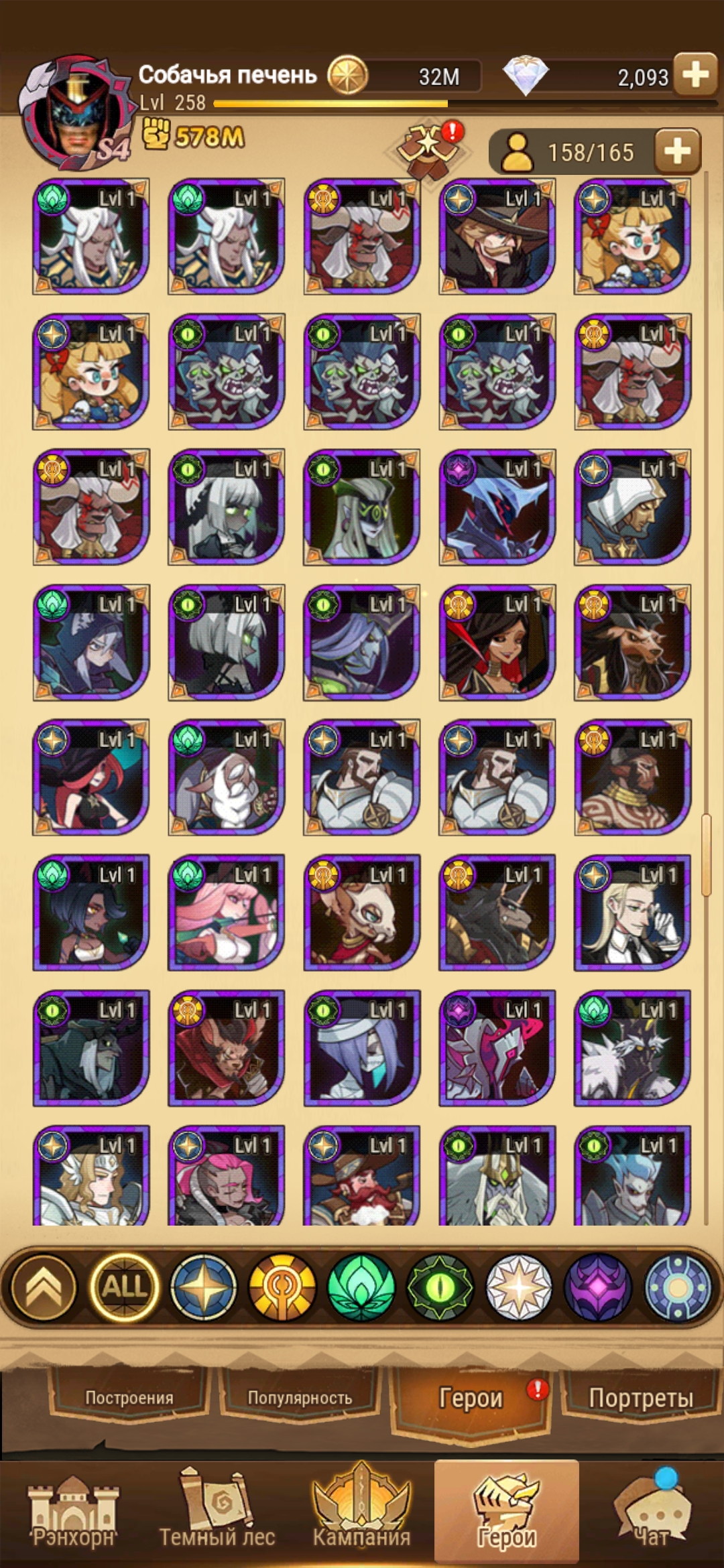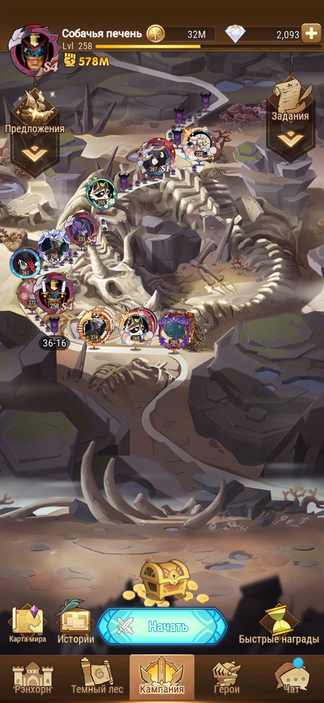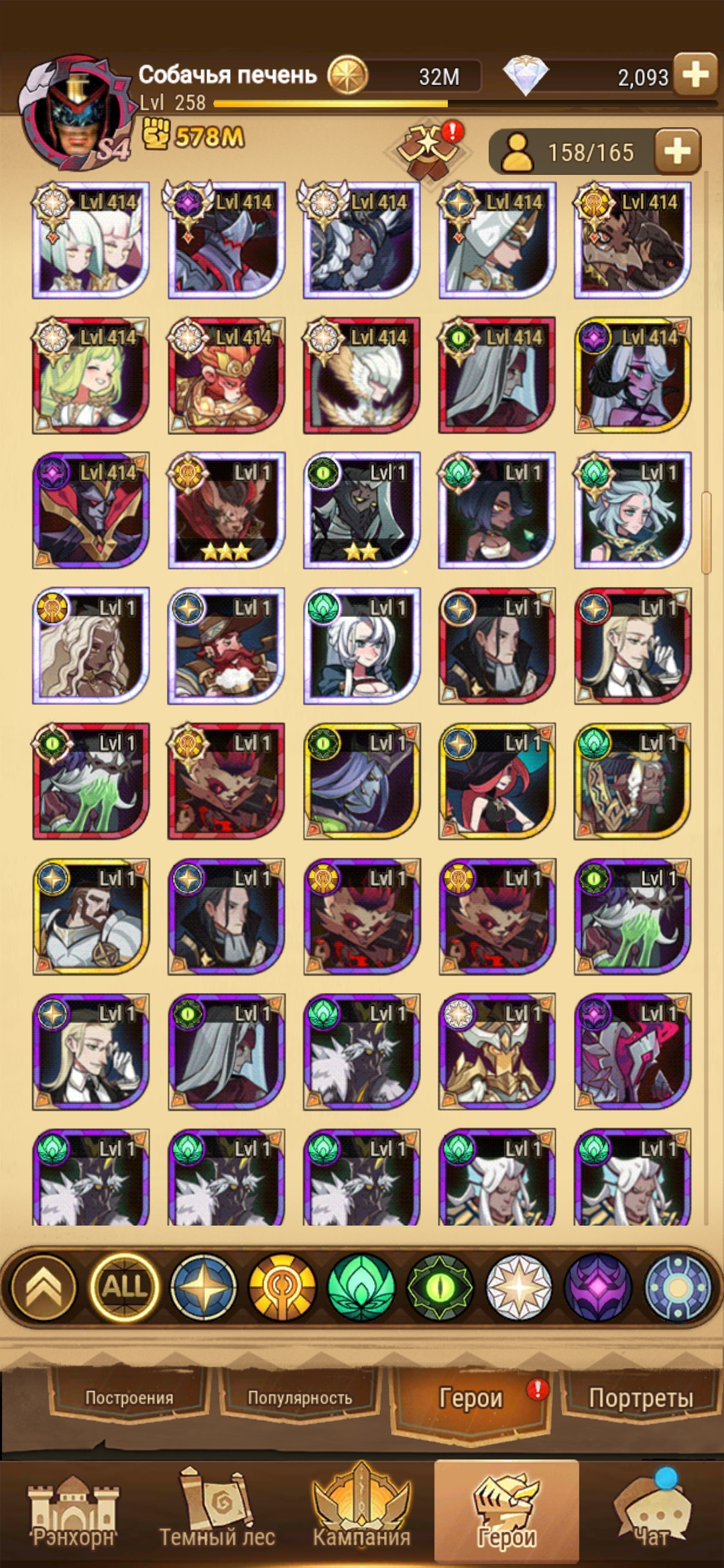 258 уровень аккаунта, 11 вип, 414 кристалл, 36 глава, есть возможность пушить выше. 48 белых героев, кроме пространственных, 19 вкачаны на +30.