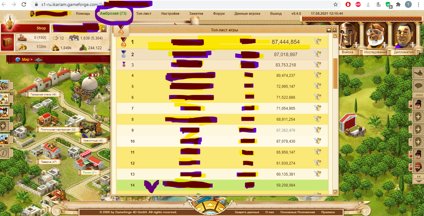Помогите, пожалуйста, оценить аккаунт Ikariam 14 место в топ-листе.