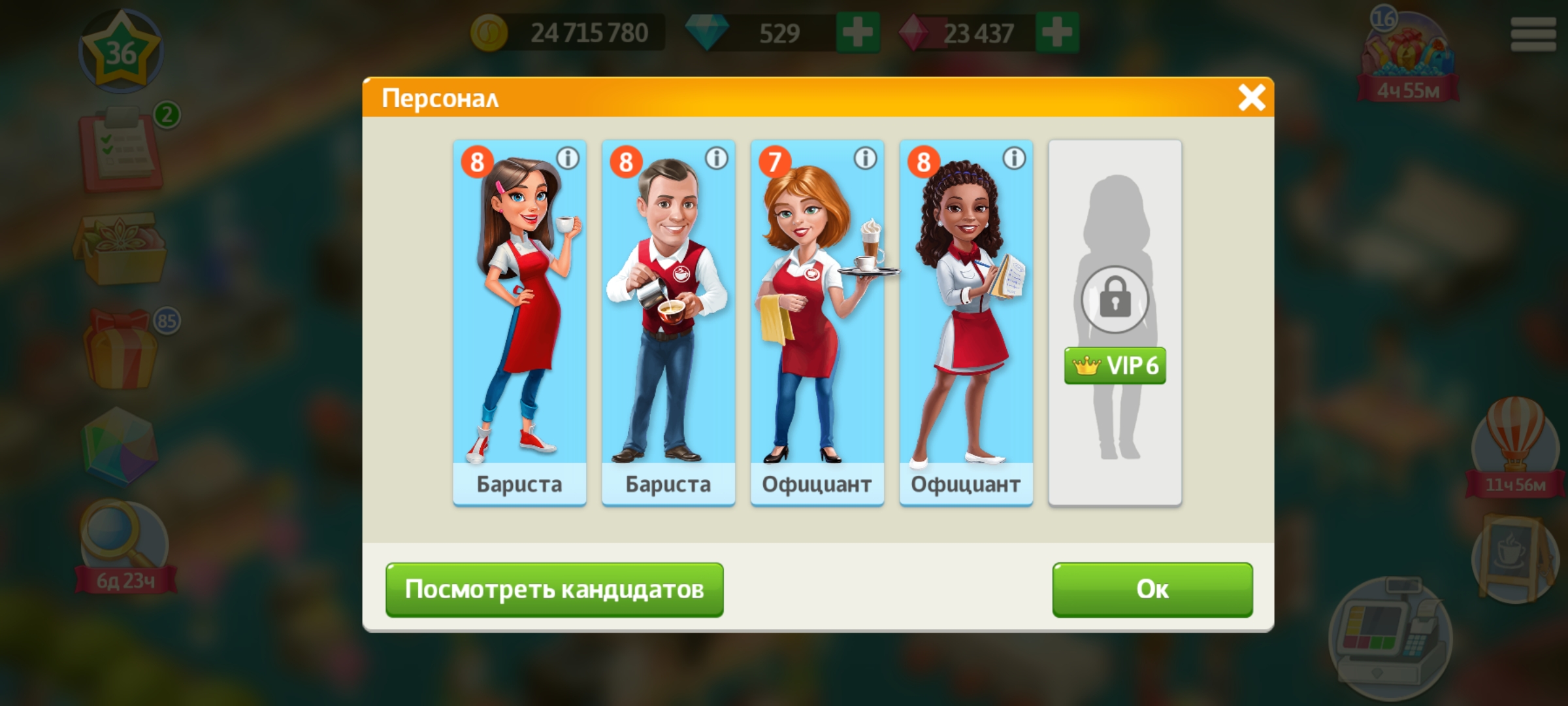 Моя кофейня. 36 уровень 5 вип, много специи и эксклюзивных вещей. Донат 10 тысяч рублей.