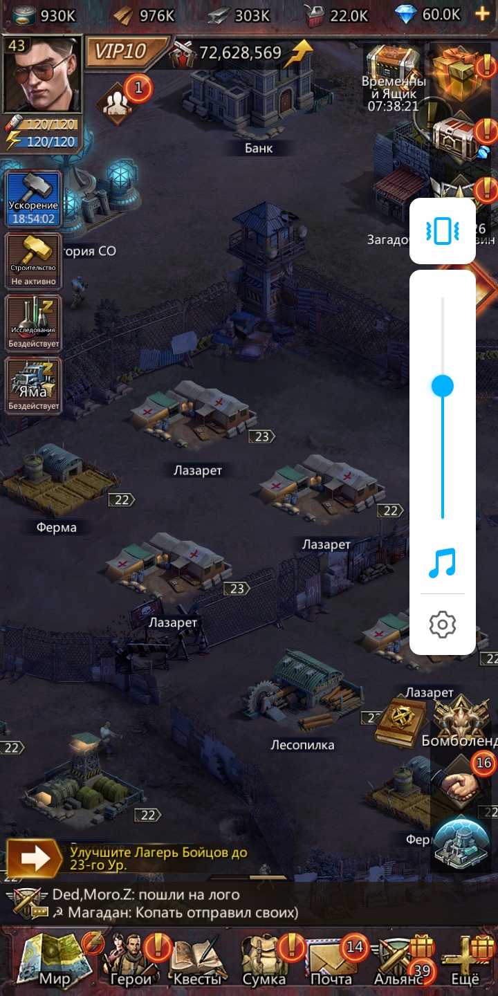 ШК 23 ур. Все здания прокачены до 23 го ур. Вся армия Т8 203 к солдат, ловушки 91 к, количества еды 207 м, дерево 45 м, сталь 8 м, топливо 5 м. Имеется герои 5 звезд: фокс +4 322ур.,реквием +4