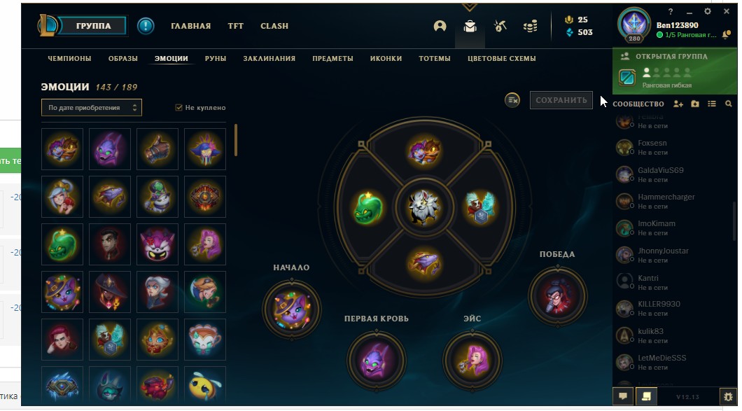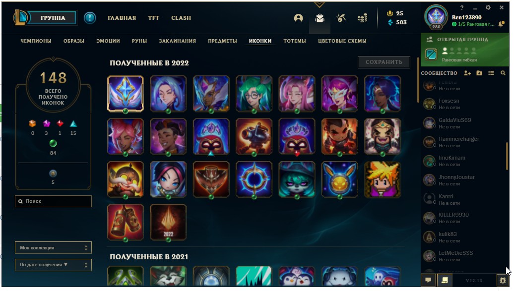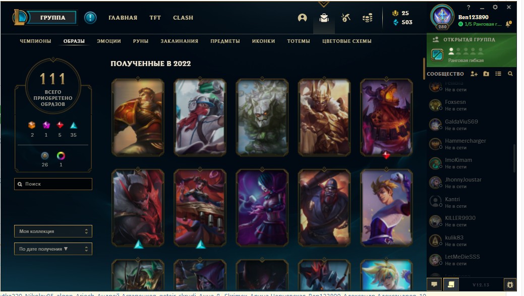 280 лвл, 145 персанажев, 111 Образов, 143 эмоций, 140 иконки,10 тотемов, 1 цветовая схема