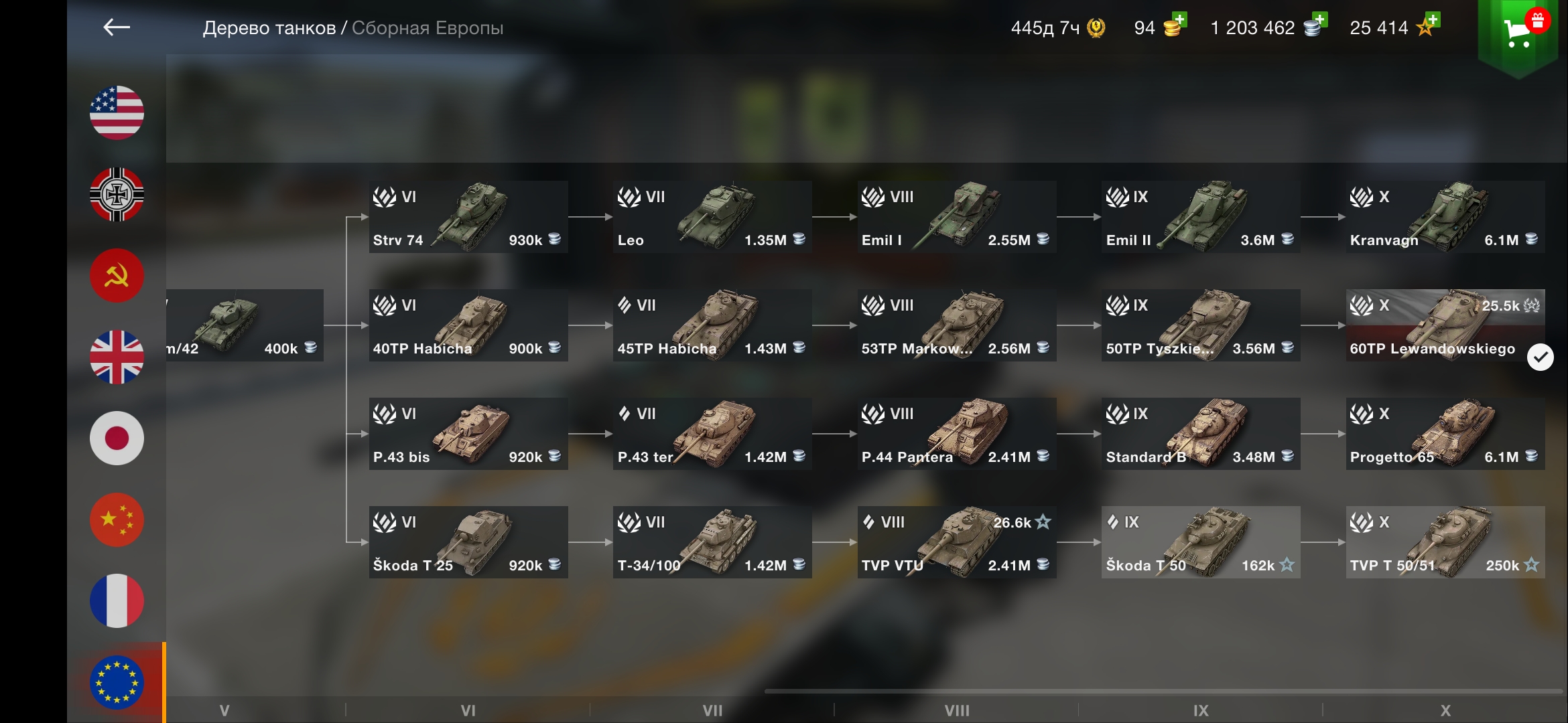 Сборная Европы Kranvagn (10 уровень), 60TP Lewandowskiego (10 уровень), Progetto 65 (10 уровень), TVP VTU (8 уровень).